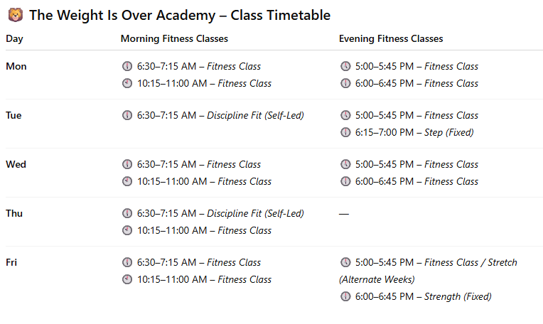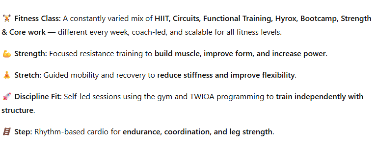 Our classes are always different and you never know what you are walking into. This way you get the element of surprise but it's one of the greatest ways to help you become fitter.